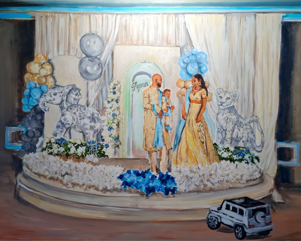 De leukste uitdaging voor mij? Het vastleggen van de karakteristieke houdingen en gebaren van de ‘hoofdrolspelers’ en andere gasten. Met een scherp oog voor detail en een passie voor het verhalende aspect, streeft Annemiek bij elk schilderij naar het vastleggen van de unieke betekenis, sfeer en omgeving. Van het opzetten van de ondertekening tot het uiteindelijke doek: je doorloopt het maakproces samen. Een prachtige, extra dimensie aan het werk!